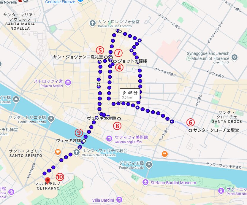 フィレンツェは交通機関が主にバスですが、主要観光地付近は全て徒歩で行けます。