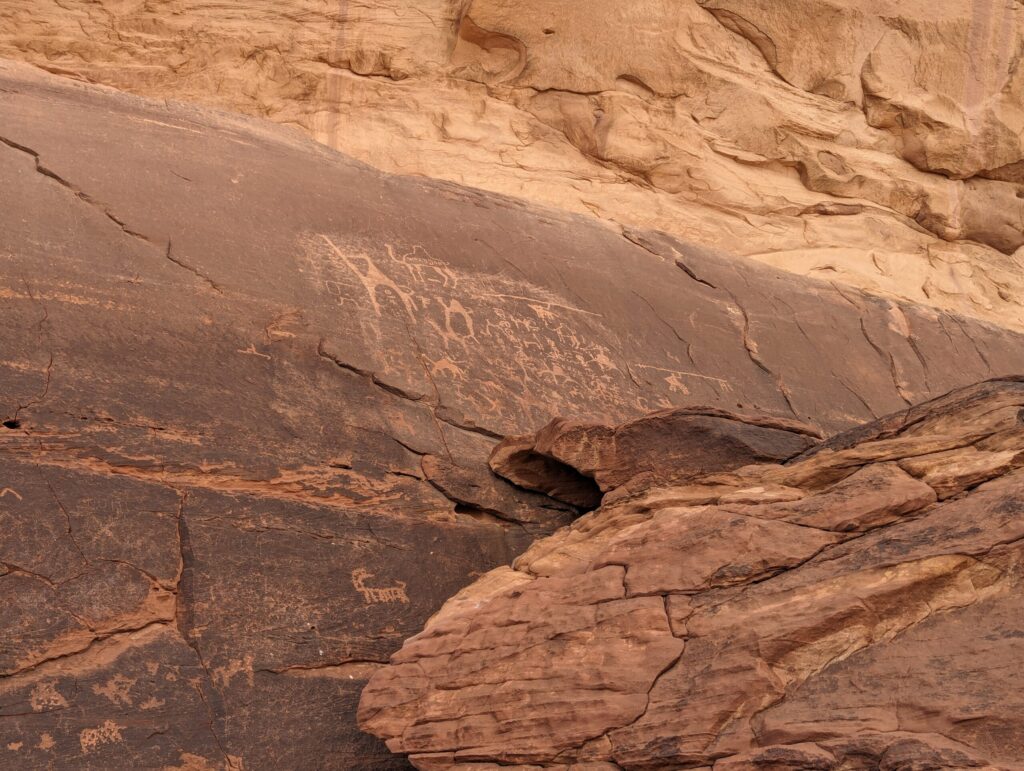 ①ラクダの岩面彫刻(al alameleh inscriptions)